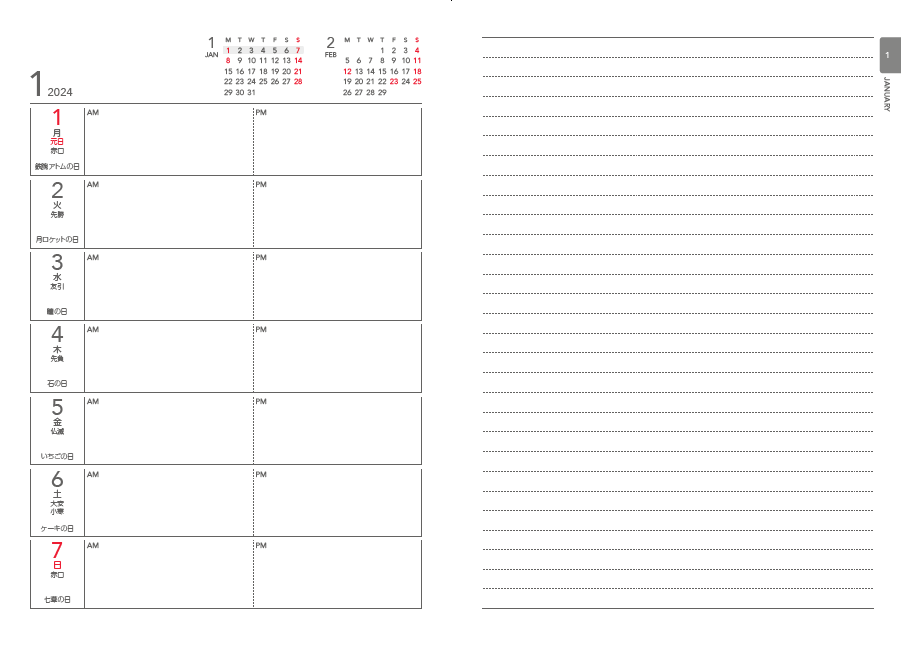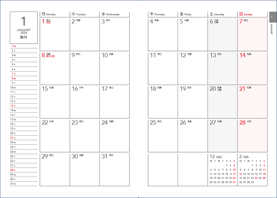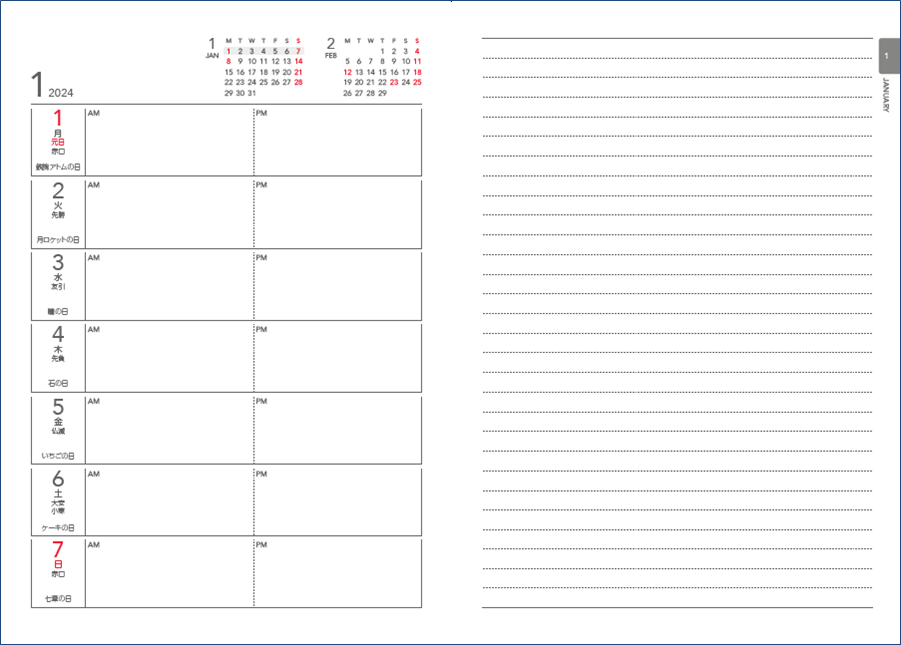 本書の特徴2:シンプルで書き込みやすい!「1月始まり」「4月始まり」どちらにも対応!