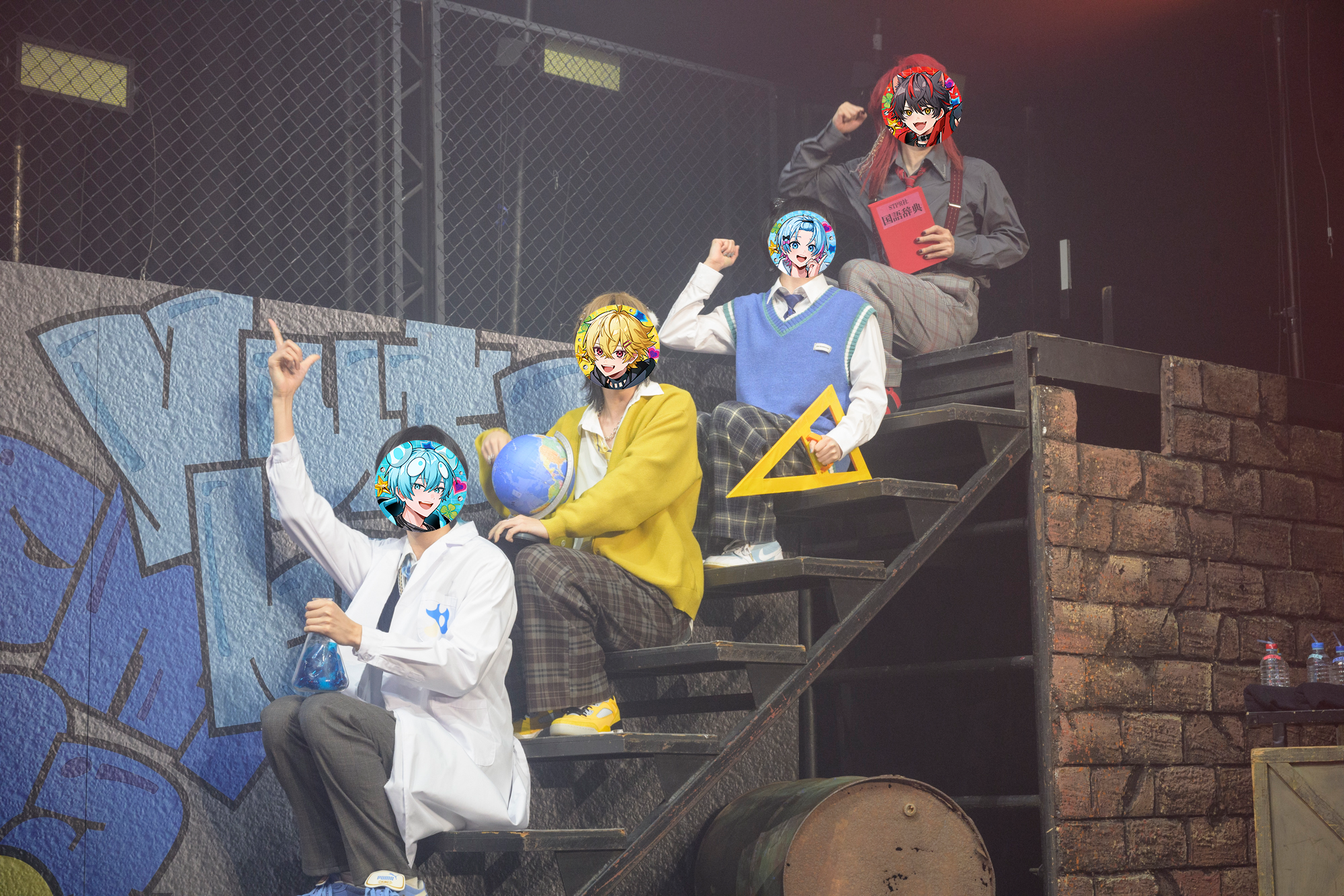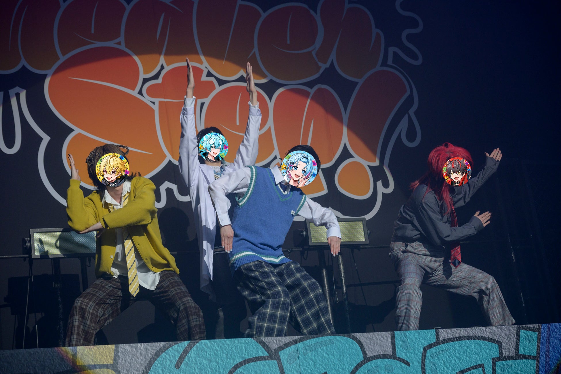 チャイムの音で始まった「がっこう戦争」を披露したのは、やなと、らお、ゆたくん、おさでいの4名によるユニット『POP組』。MVとリンクした衣装や小道具がかわいらしく楽しい空気を演出。コミカルな掛け合いや、背中合わせでくるくる回るフォーメーションダンスなど、ミュージカルのように4人のキャラクター性が存分に活かされたステージとなった。「ダンスロボットダンス」(原曲:ナユタン星人)のカバーでは、ロボットをイメージした振り付けと、ハイテンポで強めのボーカルのギャップが魅力的。最後の決めポーズのまま退場するまでキュートさを爆発させた。