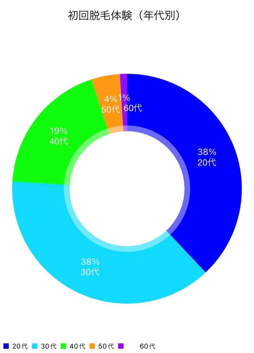 20代が38%、30代も38%と20代、30代の方が全体の約8割を越え、20代から30代の方は脱毛に興味がある方が多いということがわかりました。
