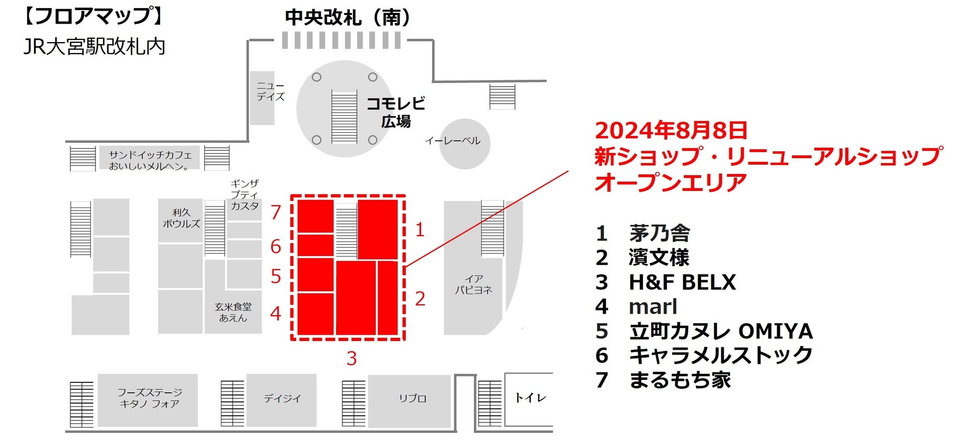 JR大宮駅「エキュート大宮」リニューアル情報 埼玉県初出店4ショップを含む7ショップが、2024年8月8日(木)オープン!