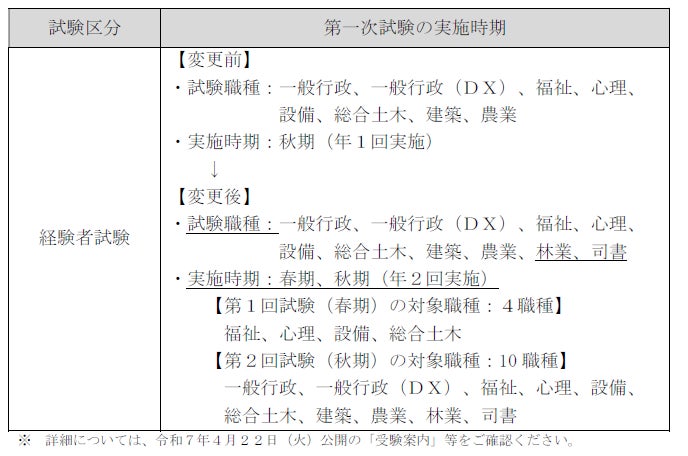 一部職種を対象とした試験を、これまでの秋期だけでなく春期にも実施します。