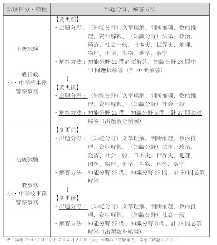 2 上級試験及び初級試験の事務系3職種で、教養試験の出題分野、出題数を見直します。