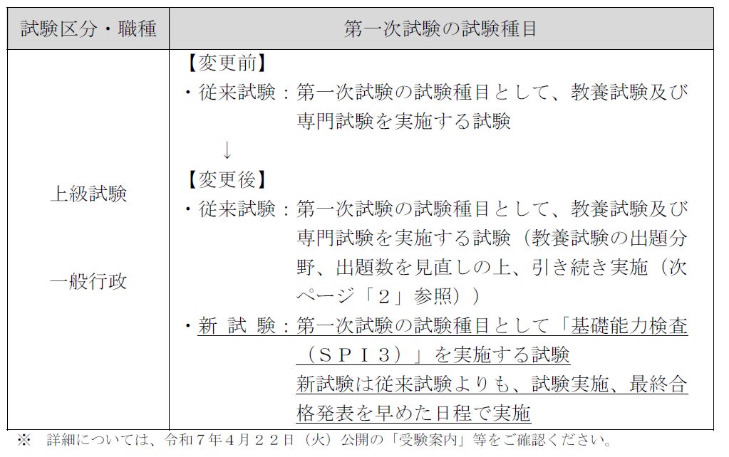 1 上級試験の一般行政で、「基礎能力検査(SPI3)」方式の試験を新たに導入します