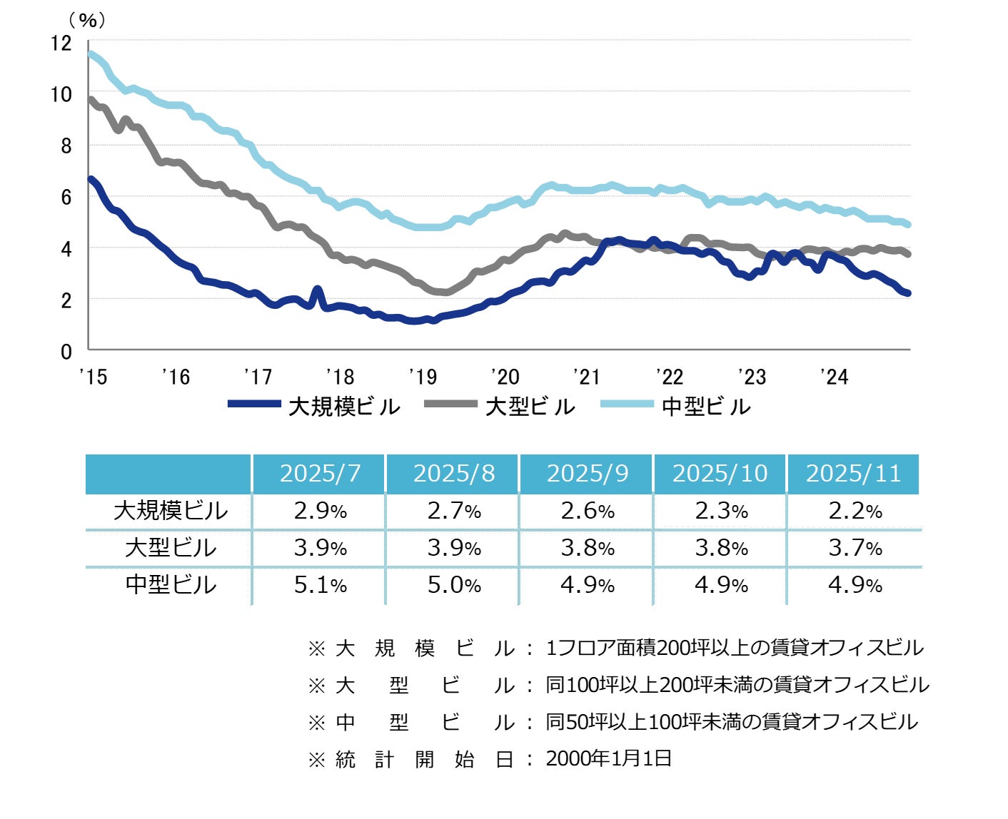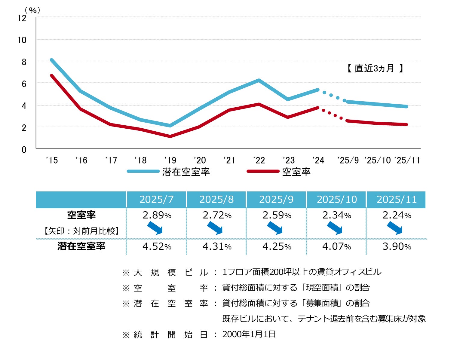 空室率 5ヵ月連続の低下 潜在空室率は2021年2月以来の3%台
