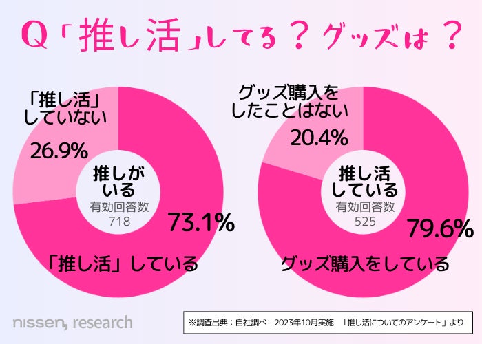 さらに”推しがいる”人の73%が推し活をしており、グッズの購入経験も約8割と非常に多い結果になりました。
