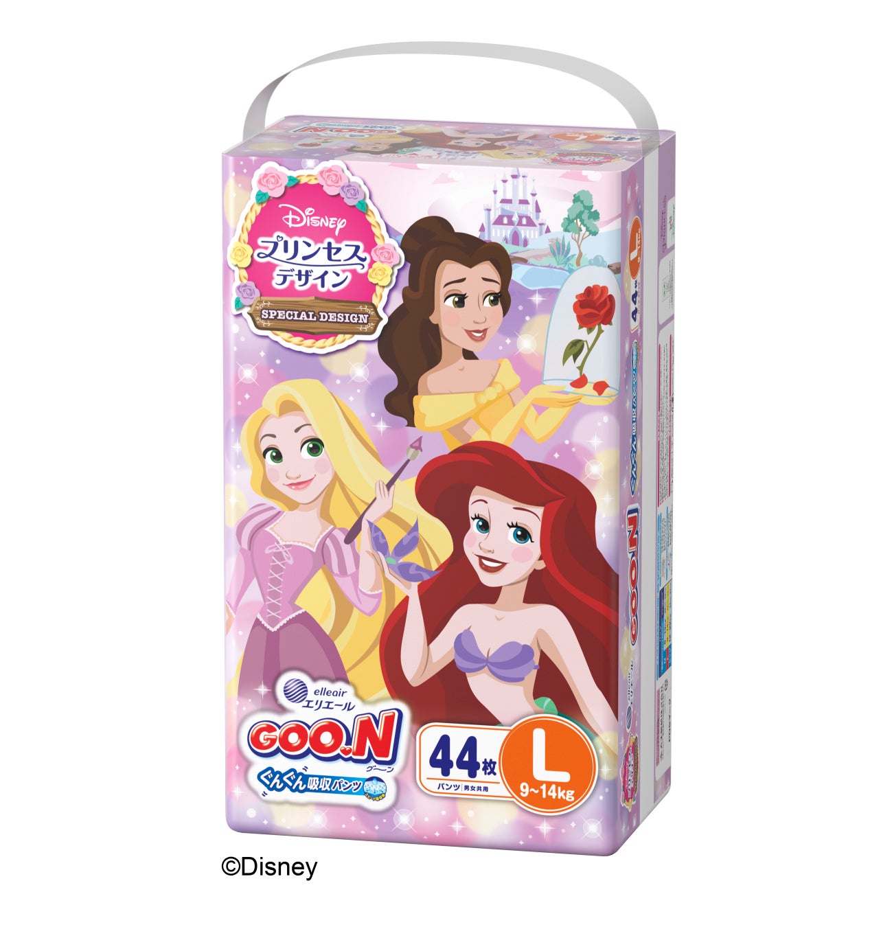 再販売を望む多くの皆さまからの声を受け、プリンセスデザインの紙おむつ第2弾として、パッケージが新たに生まれ変わった「グーン ぐんぐん吸収パンツ ディズニープリンセスデザイン」を発売します。『塔の上のラプンツェル』のラプンツェル、『リトル・マーメイド』のアリエル、『美女と野獣』のベルなどのプリンセスがパッケージやおむつ柄に登場し、「グーン」でしか見られないプリンセスたちの夢の共演で、毎日の子育てに「楽しさ・特別感」をお届けします。