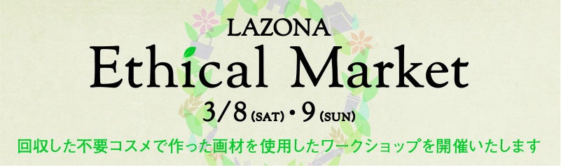 捨てられるはずだった廃棄物や不要品を、新しい製品にアップグレードする『アップサイクル』。ラゾーナでは「プラスコスメプロジェクト」を通じて、不要になった化粧品をクレヨンに生まれ変わらせるアップサイクルを実施いたします。ぜひご自宅で眠っている不要コスメをラゾーナ館内対象店舗にお持ちください。期間中に回収した不要コスメは、3月8日(土)・9日(日)に開催予定の「LAZONA Ethical Market」で実施するワークショップの画材へと生まれ変わります。