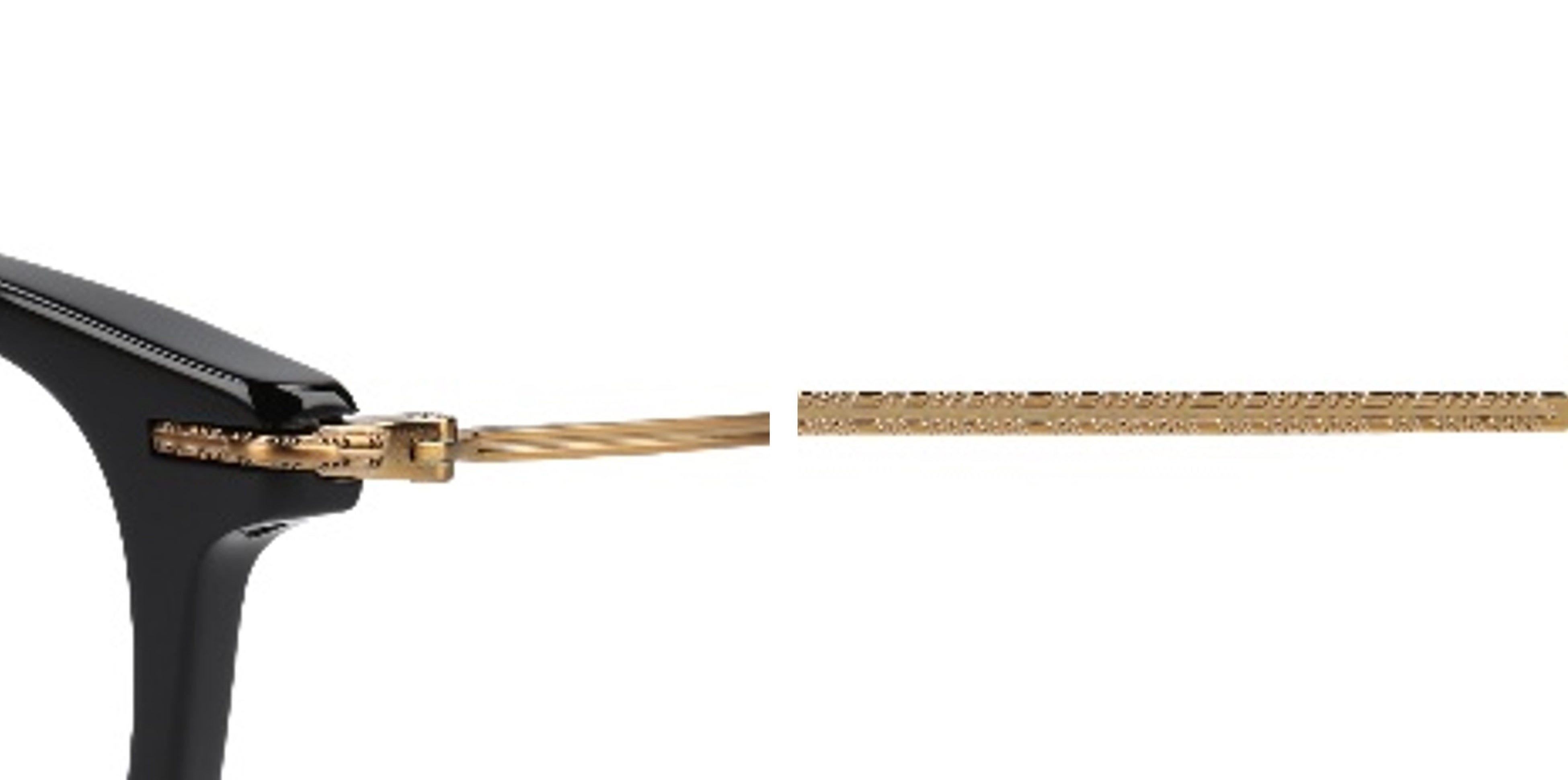 フロントやテンプル(つる)の内側に矢羽をモチーフにした美しく繊細な彫金仕様のデザインが施されています。