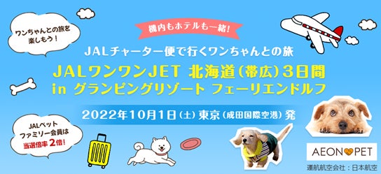JAL・ジャルパック・イオンペットによる、チャーター便で行くワンちゃんとの旅「JALワンワンJET北海道(帯広)3日間」 を8月9日より発売開始