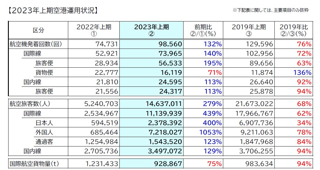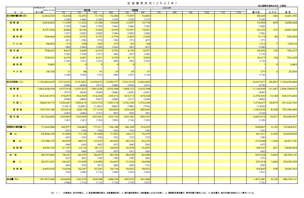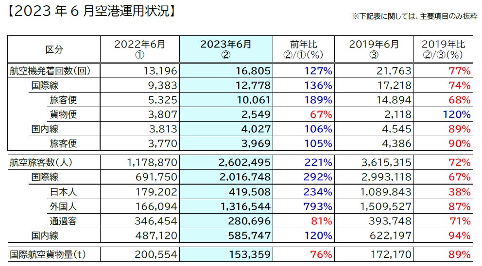 2023年6月 空港運用状況 国際線旅客数が2020年2月以来初めて200万人を突破国際線旅客便発着回数も2カ月連続で1万回超に