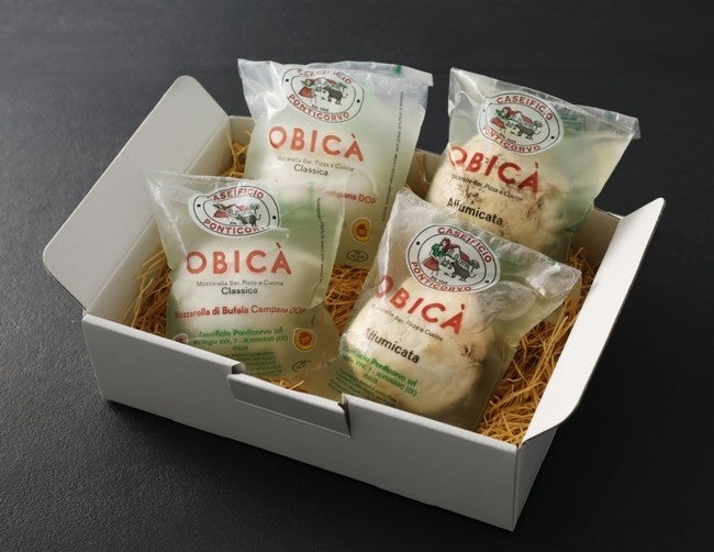 オービカでは、本場カンパーニャから空輸したDOP認定のフレッシュモッツァレラチーズをお楽しみいただけます。モッツァレラチーズは使用する原料によって名称が分かれ、水牛ミルクを使用したものをモッツァレラ・ディ・ブッファラ、牛乳で代用したものを、 モッツァレラ・ディ・ヴァッカもしくはフィオル・ディ・ラッテと呼びます。一般的に、水牛ミルクを原料とするものの方が良質とされ、乳牛よりも水牛の方が飼育が難しく、乳の量も少ないため希少価値が高いと言われています。