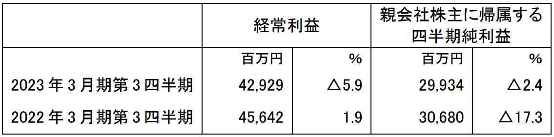 ■2023年3月期第3四半期の連結業績(2022年4月1日~2022年12月31日)
