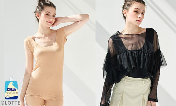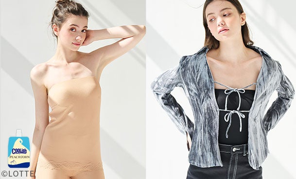 毎年春夏に大好評のPEACH JOHNの名品インナーシリーズに、今年はロッテの“飲むアイス”「COOLISH」とのコラボレーションが登場!第一弾は春から秋まで快適なインナーやルームウェア。