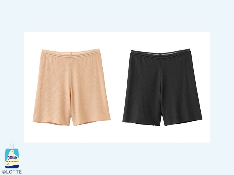 クーリッシュペチパンツは、表面に凹凸があるため、汗をかいても肌に張りつきにくい。たて方向によく伸びるリブ生地で汗をかいてもムレにくく、蒸し暑い時季も快適に過ごすことができます。また、ボディにほど良くフィットするシルエットで、ウエスト一周にメッシュゴム付き。長時間椅子に座る時など、おしりの汗ジミやムレ、ボトムの張り付きが気になる日にもおすすめです。さらに、薄手や淡色の服にショーツが透けたり、ラインが出るのを防ぎたい時にも便利なアイテムです。