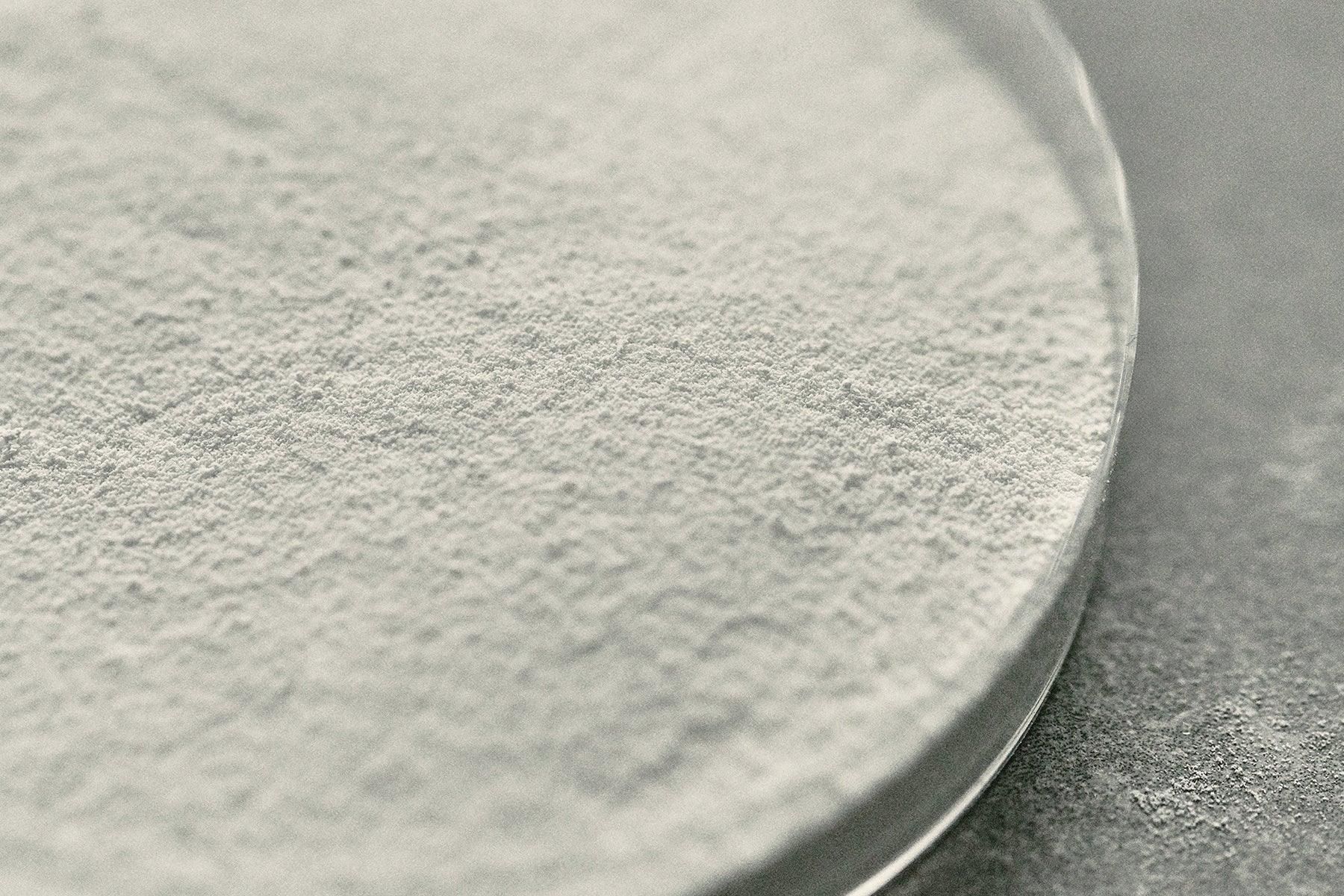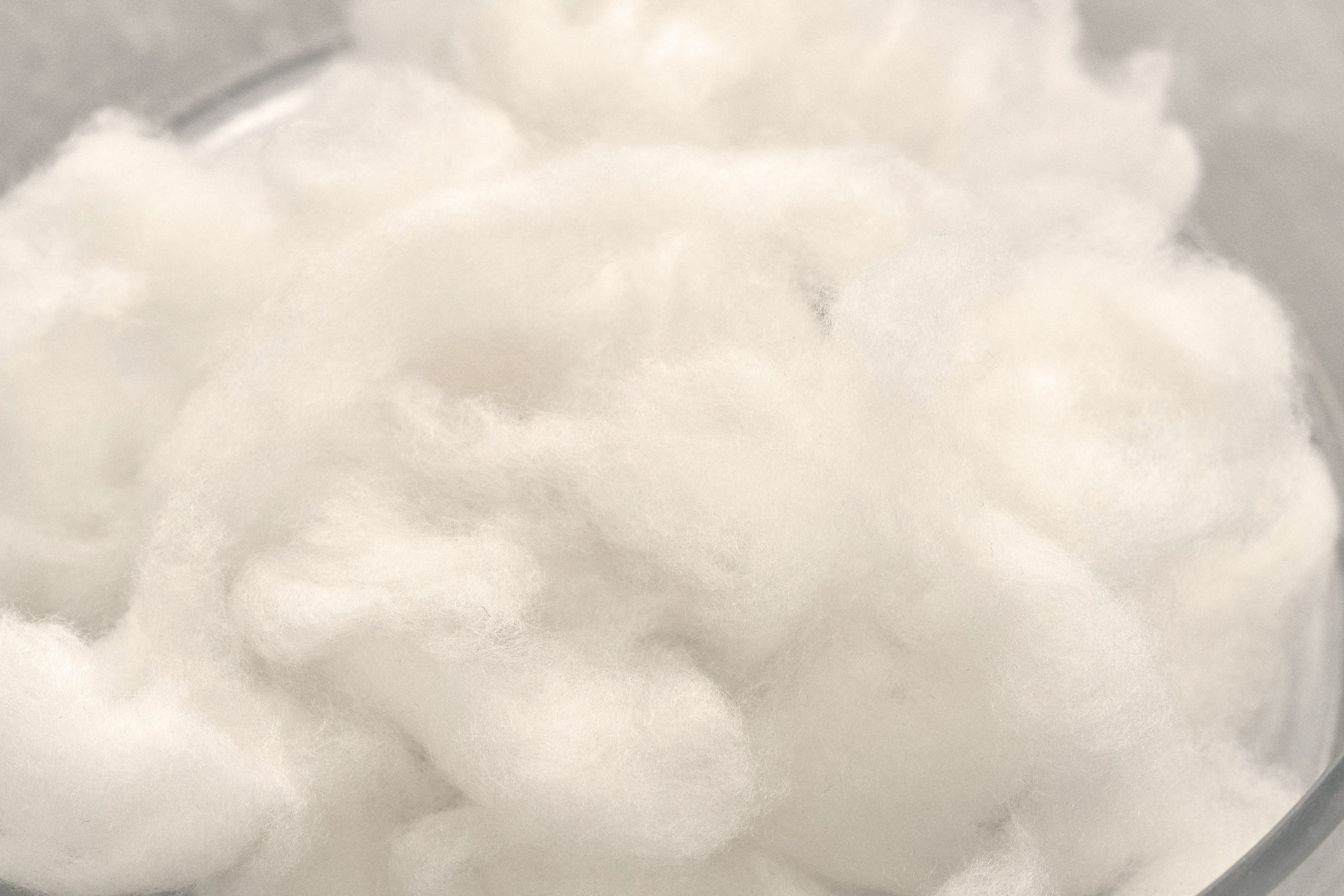 精製工程を経て取り出されたBrewed Protein™ポリマー(粉末)。これを紡糸し繊維へと加工されます