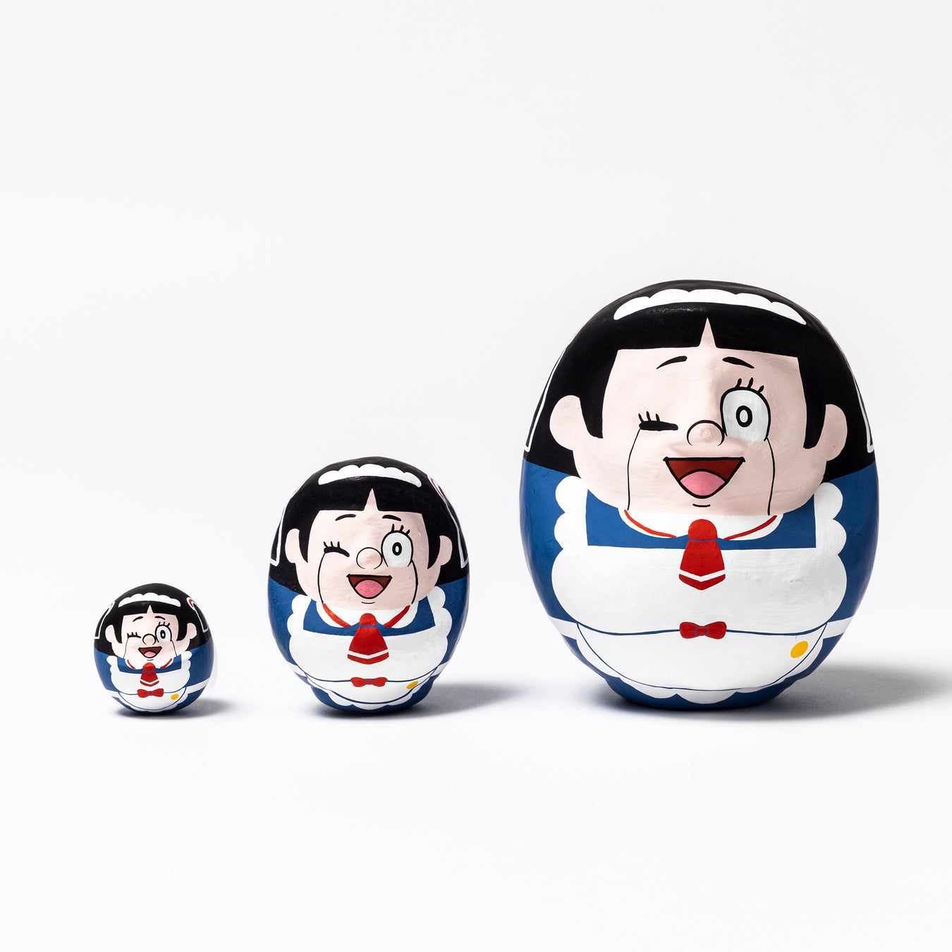 日本一のだるま市である福島県白河市の〈白河だるま総本舗〉別注。縁起の良いウィンクしたロボコだるまです。