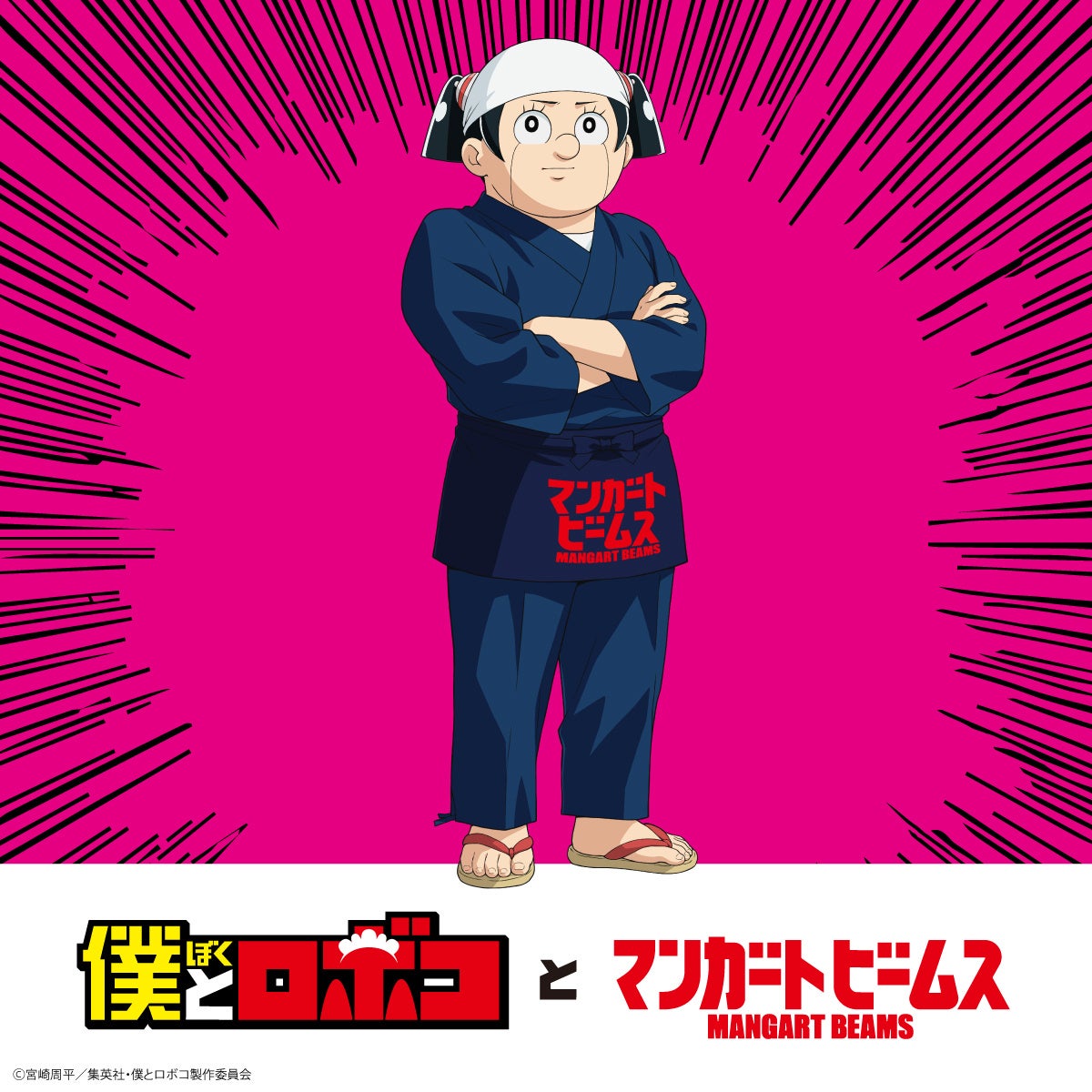 メインビジュアルには、日本の匠をイメージしたロボコの前掛けに〈マンガート ビームス〉のロゴを施した描き下ろしビジュアルとなっています。