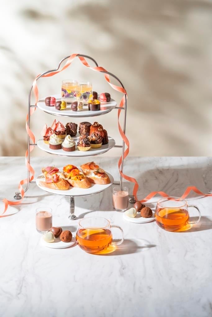 ゴディバのエグゼクティブシェフ・ショコラティエ / パティシエ ヤニック・シュヴォローが監修した、カカオとチョコレートの魅力を存分に堪能いただけるさまざまなデザート、セイボリーが魅力のGODIVA café「アフタヌーンティーセット」。今回は、「デコポンとジュレのチョコレートシェル」、「伊予柑とチョコムースのワッフルカップ」、「甘夏とホワイトチョコムースのタルト」など新メニューを取り揃えてリニューアルしました。コーヒー、紅茶、ハーブティーなどと一緒にお楽しみいただけます。