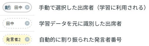 従来は表示上区別されていなかった、手動で選択した発言者と自動で識別された発言者を見た目で区別できるようになりました。