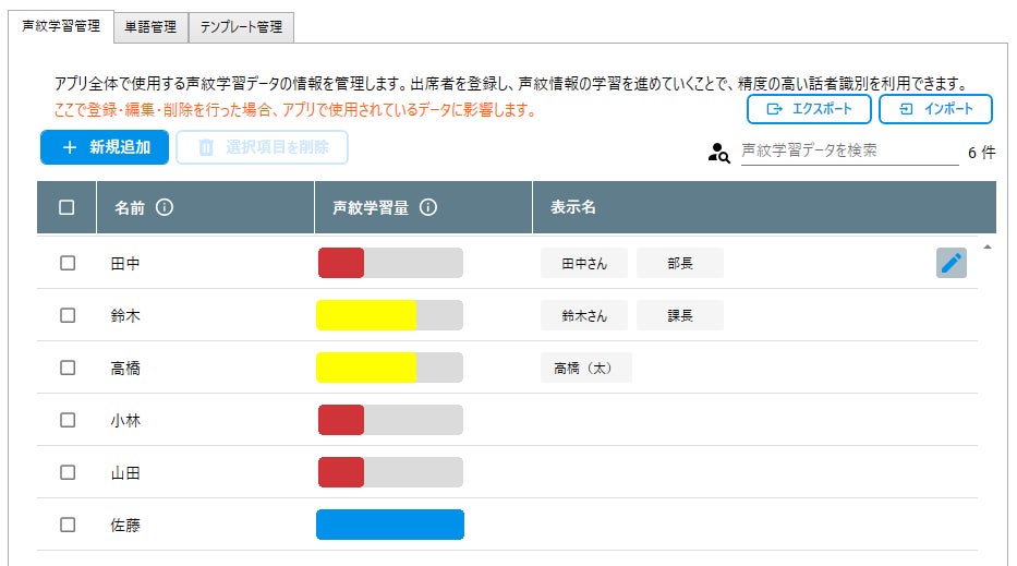 ・発言者識別に必要な声紋情報が紐づいた出席者のマスタデータを、会議ごとに表示名を変えられるようになりました
