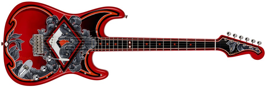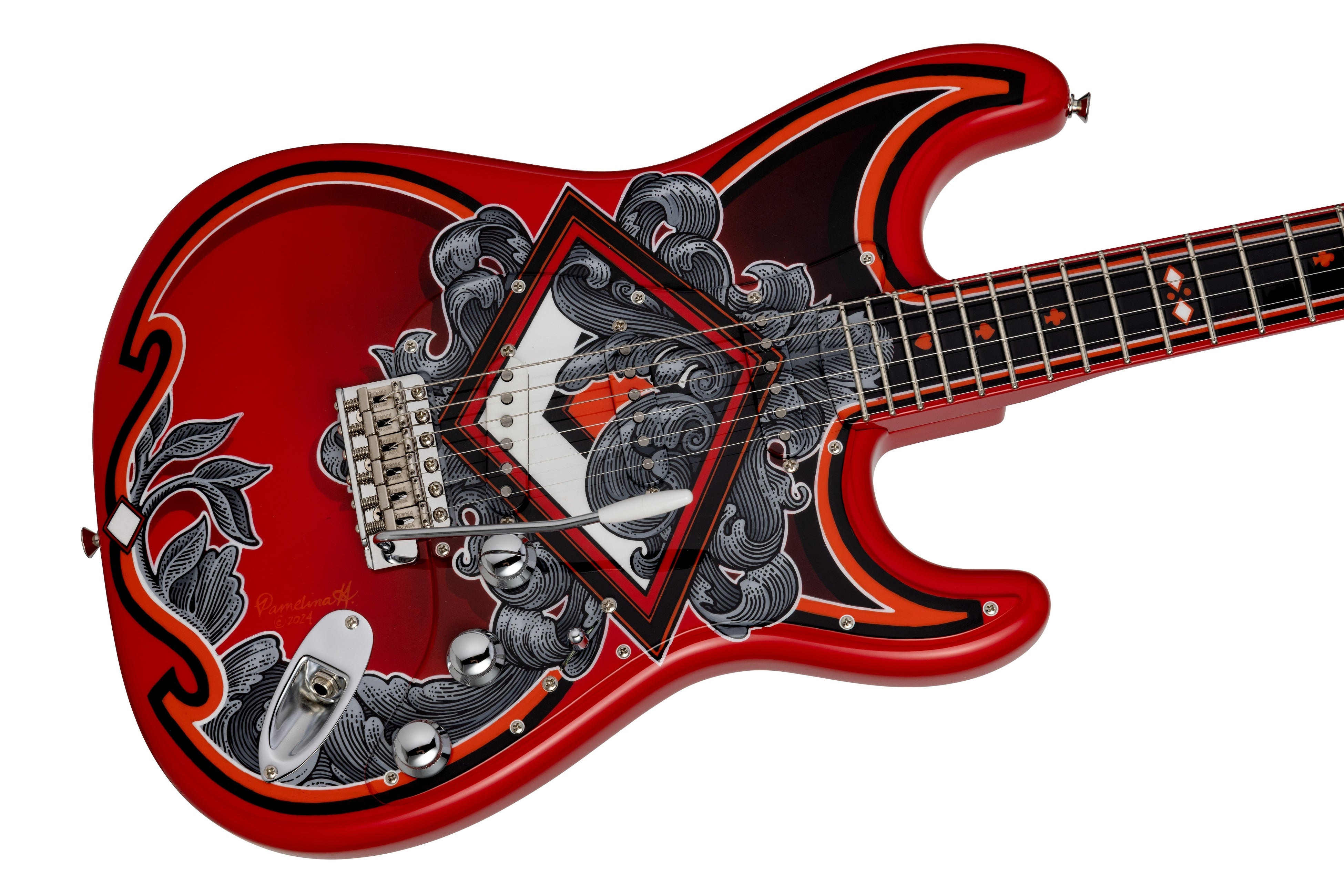 本コレクションについて、シニア・マスタービルダーのポール・ウォーラーは次のように語っています。「デイヴィッド・ブラウン、オースティン・マクナット、アンディ・ヒックスの3人がマスタービルダーとして加わったタイミングで、彼らと一緒にプロジェクトを立ち上げたいと考えていました。ちょうどその頃、PamelinaとDeck O' Cards Stratocasterのプロジェクトを構想しており、4人で取り組む素晴らしい“自己紹介”プロジェクトになると直感がありました。それぞれが好きな絵柄を選び、Pamelinaとデザインを共同制作した結果、過去に例のないコレクションが完成しました。鮮やかな赤と黒が白いベースカラーに映えるアートワーク、ネックに施されたペイントによって、どれも真のカスタムギターに仕上がっています。」