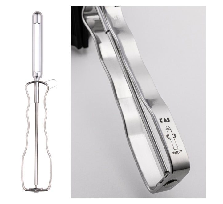 手にフィットして、よく切れる斜め刃のステンレスピ-ラーです。