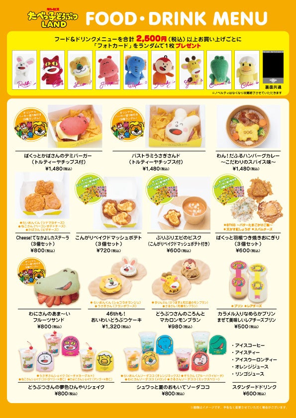 フード・ドリンクメニューを合計2,500円(税込)以上お買い上げごとに「フォトカード」をランダムで1枚プレゼント