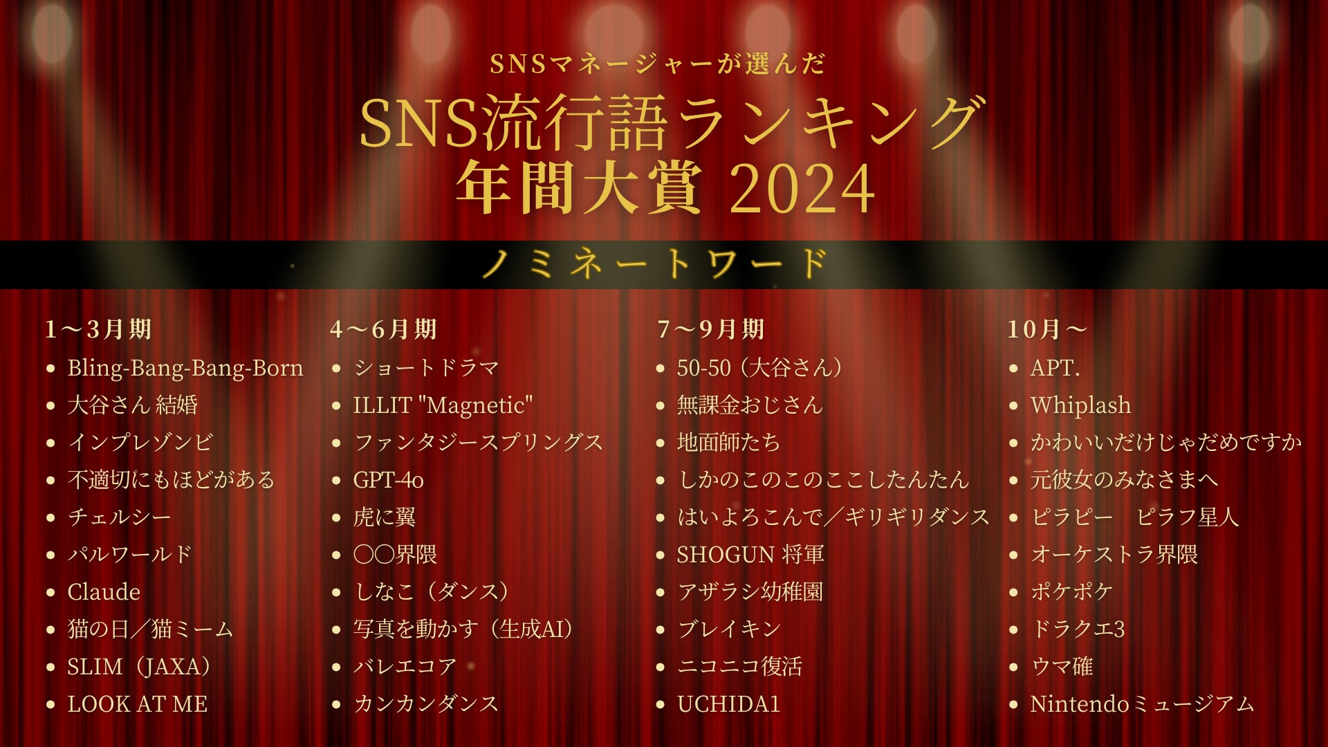 2024年SNS流行語ランキング 年間大賞ノミネートワード発表