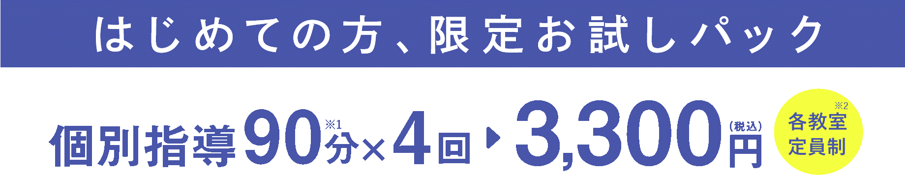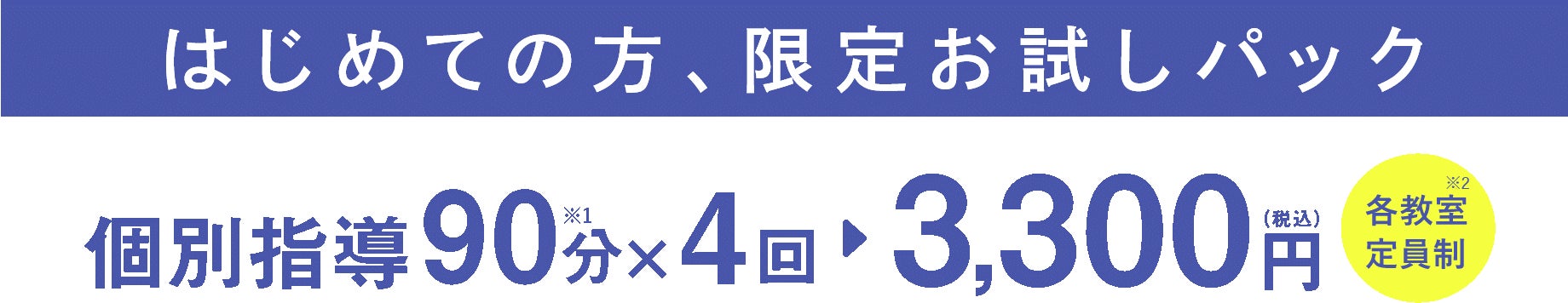 個別指導90分×4回分を特別価格の3,300円(税込)でお試しいただけます。