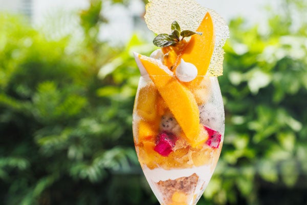 川崎市と宮崎県の「宮崎県と川崎市の連携・協力の取り組みに関する協定」に基づき、旬の宮崎県産マンゴーをメイン食材として選びました。他にはドラゴンフルーツやパッションフルーツといった南国フルーツを使い、一足早く夏らしい味覚をお楽しみいただけます。