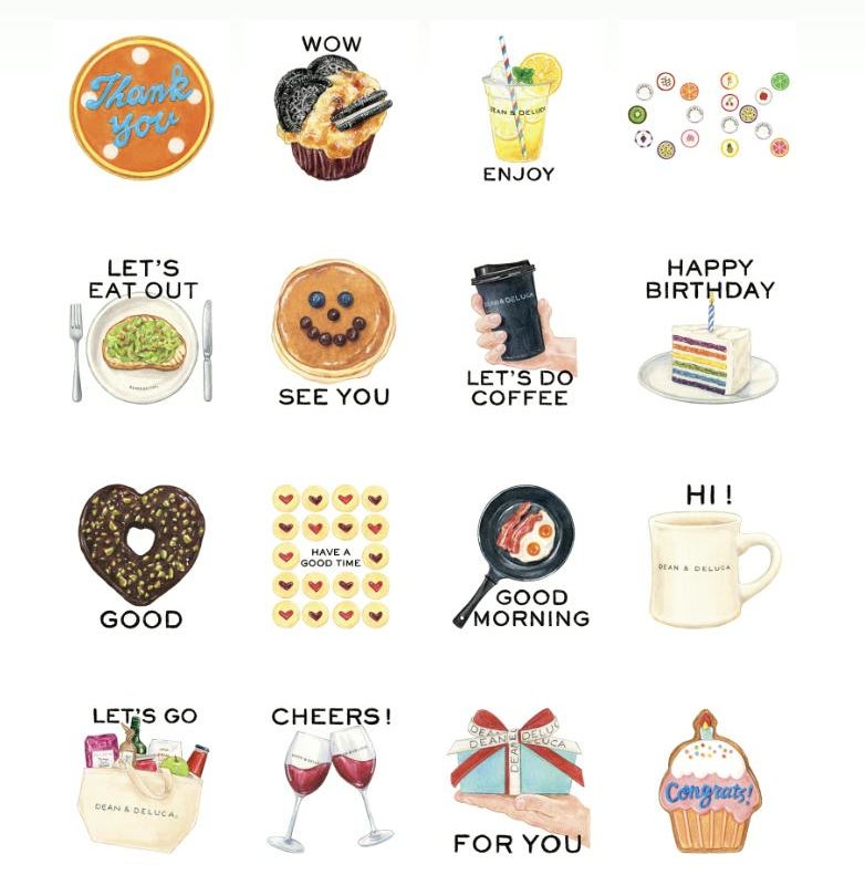 世界中のおいしい食材のイラストとともに、食するよろこびやさりげないメッセージを伝えるDEAN & DELUCA 公式スタンプが登場です。会話に彩りを添える全16種のスタンプです。