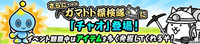 イベント期間中、「ガマトト探検隊」にコラボキャラクターの「チャオ」が登場し、獲得アイテム量がアップいたします。