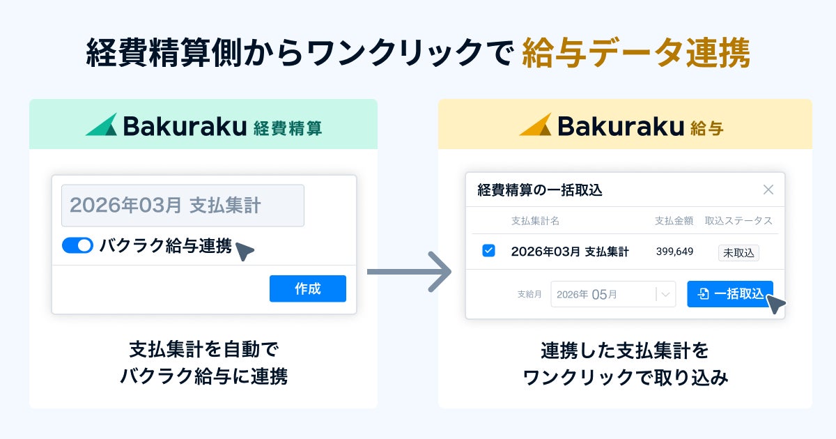 バクラク給与、「バクラク経費精算」「バクラク勤怠」との連携機能を提供開始。立替経費の給与合算支払や勤怠情報の取り込みがワンクリックで完結
