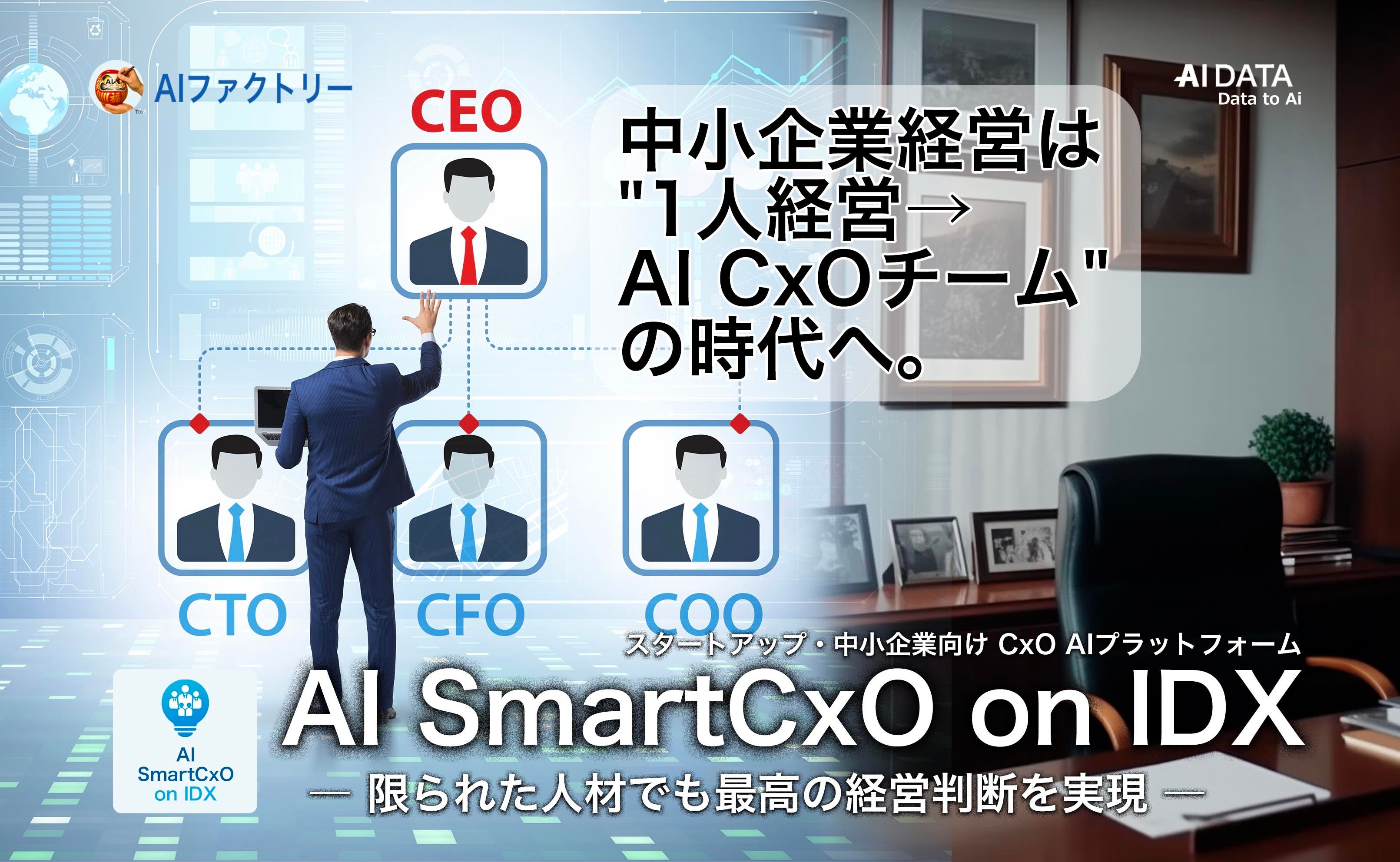AIデータ社、中小企業経営は"1人経営→AI CxOチーム"の時代へ。各部門に博士級AI幹部を配備する「AI SmartCxO on IDX」を発表