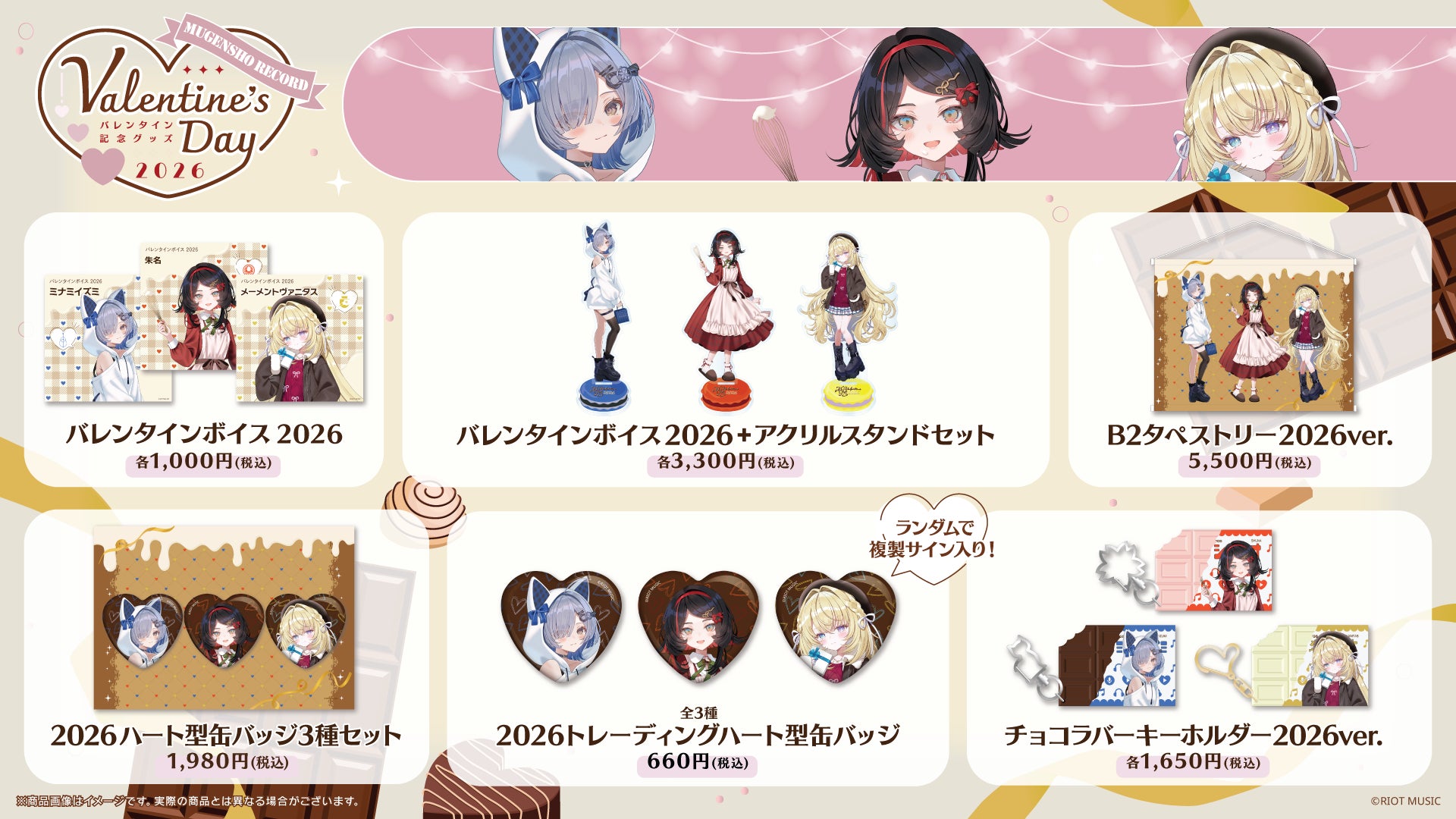 株式会社RIOT MUSIC(本社:東京都港区、代表取締役:舩橋 純、読み:ライオットミュージック、以下「RIOT MUSIC」)は、2026年1月23日(金)18時より『無原唱レコードバレンタイングッズ2026』の販売、および2025年版バレンタイングッズの再販をRIOT MUSIC OFFICIAL STOREにて開始いたしました。