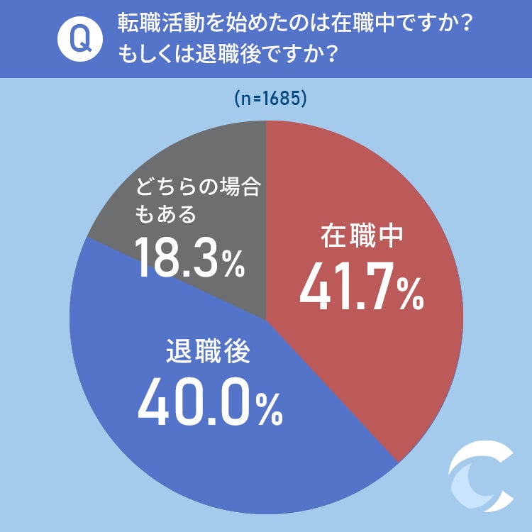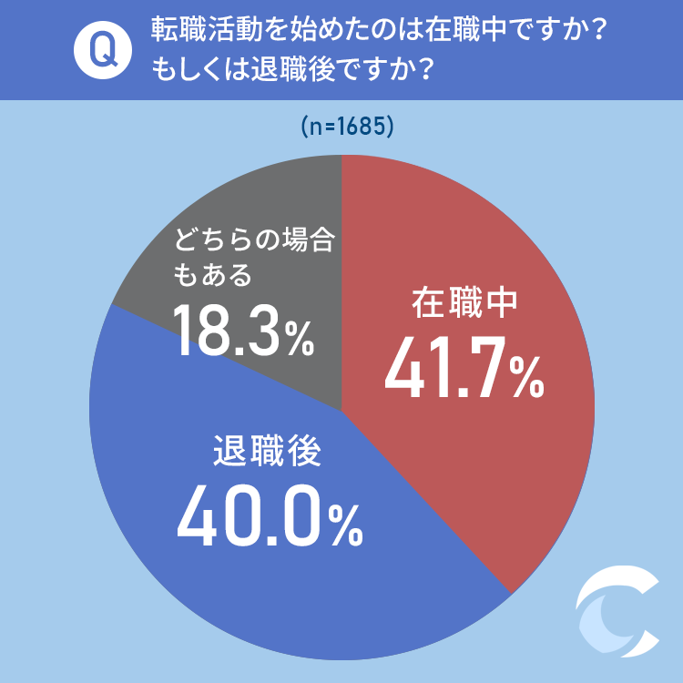 まず、転職活動を始めたのは在職中か、もしくは退職後かについて聞きました。