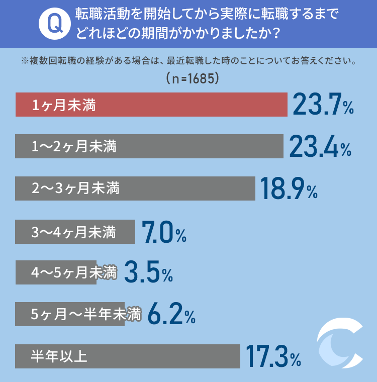 ■転職活動を開始してから実際に転職するまでどれほど期間がかかった?