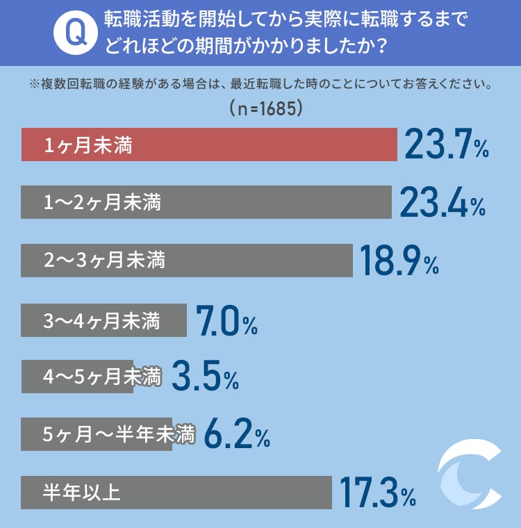 質問3:転職活動を開始してから実際に転職するまでどれほどの期間がかかりましたか?