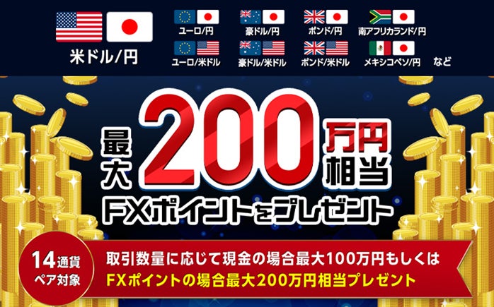『外貨ネクストネオ』でのお取引で最大200万FXポイント(現金の場合は最大100万円)プレゼント!