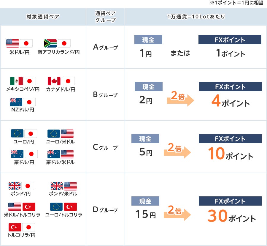 ユーロ、ポンド関連通貨ペアのキャッシュバック額にご注目いただきつつ、この機会にぜひお試しください。