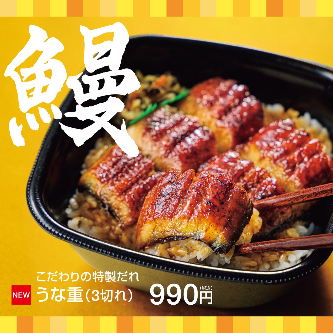 このたび「ほっともっと」では、毎年恒例の夏の風物詩『うな重』990円、『上・うな重』1,750 円、ネット予約限定の『1本うな重』2,450 円を、6月25日(火)より新発売いたします。