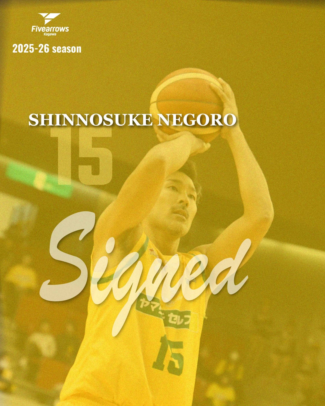 このたび香川ファイブアローズでは、根來新之助選手との2025-26シーズンの選手契約が決まりましたので、お知らせいたします。