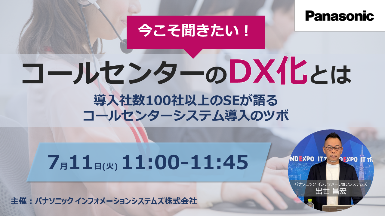 パナソニック インフォメーションシステムズ株式会社は、2023年7月11日(火)『今こそ聞きたい!コールセンターのDX化とは』セミナーを開催します。