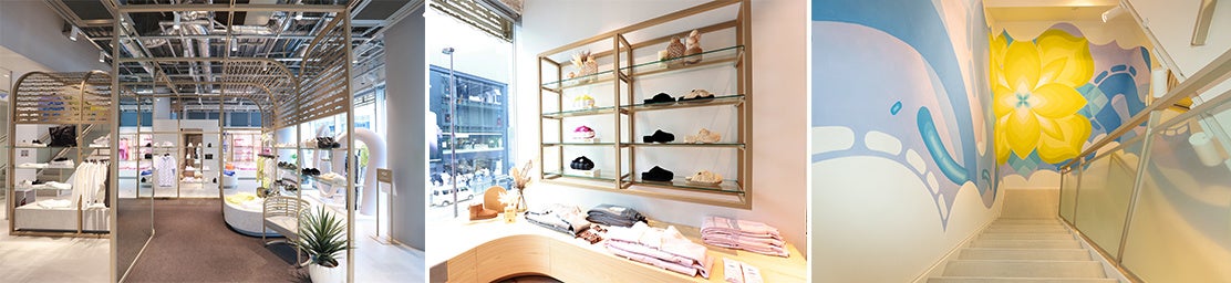 この旗艦店は、ブランドのルーツであるカリフォルニアの世界観やライフスタイルが感じられる、UGGブランドならではのコンフォートでラグジュアリーな空間となっており、各シーズンやキャンペーン毎にそれぞれのテーマにあわせて、ブランドのストーリーを表現します。オープン時は同日7月1日より展開する2023年秋冬のグローバルキャンペーン「Feels like UGG」のシーズンテーマである「セルフ・リフレクション」を反映し、内省の力を表現しています。