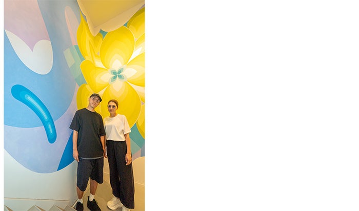 KAMIは、生まれ育った京都の風景と幼少から親しんできたスケートボードの軌跡にインスパイアされた滑らかなライン(曲線)をフリーハンドで描き、SASUは、80年代のサブカルチャーやカウンセリング心理学に影響を受け、女性ならではの繊細さと色使いでシンメトリーのモチーフを描く。プライベートでも夫婦である二人は、日常の些細な美しさや喜びを表現へと昇華させることを試みながら、あらゆる角度からライフとアートを追求し、壁画を通じてクリエイティブな感性を現代に発信している。