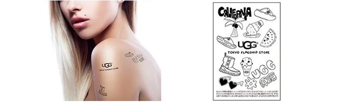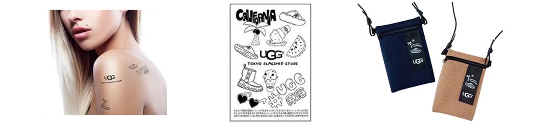 7/1新発売、FoamO UGGplush Slide(フォームオー UGGプラッシュ スライド)などのUGGアイテムを含めオープン記念限定の描き下ろしイラスト入りタトゥーシールを来店してくださった方全員にプレゼントいたします。シールで気軽に試せるから、肌の露出が増える夏に遊び心をとりいれて、あなたらしく自由なファッションを楽しんでみて。