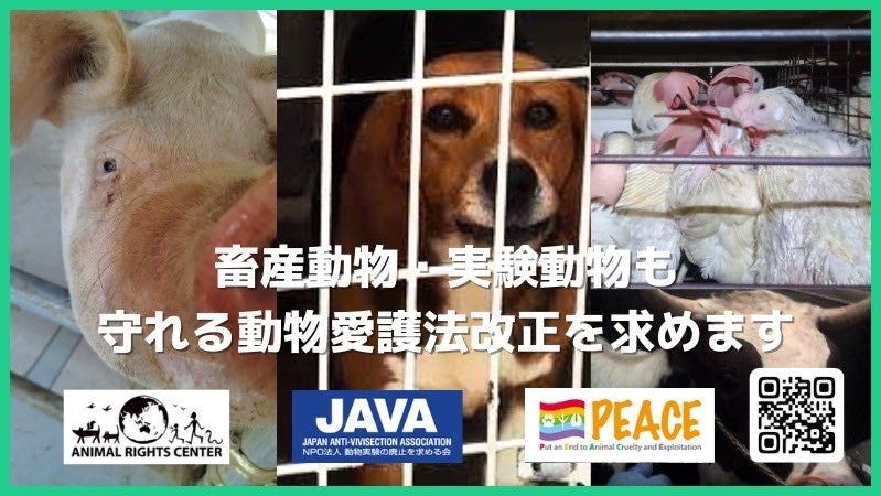 認定NPO法人アニマルライツセンター、NPO法人動物実験の廃止を求める会、PEACE命の搾取ではなく尊厳を の3団体。