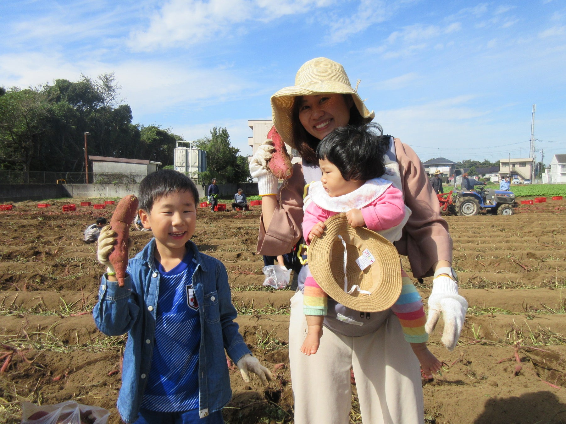 JAつくば市谷田部は、化学肥料や農薬を極力使用しない農法を実践しています。会場のさつまいも畑は、日光を十分に浴びた柔らかな土壌が特徴です。大人もこどもも、泥だらけになりながらさつまいも堀りを楽しみます。