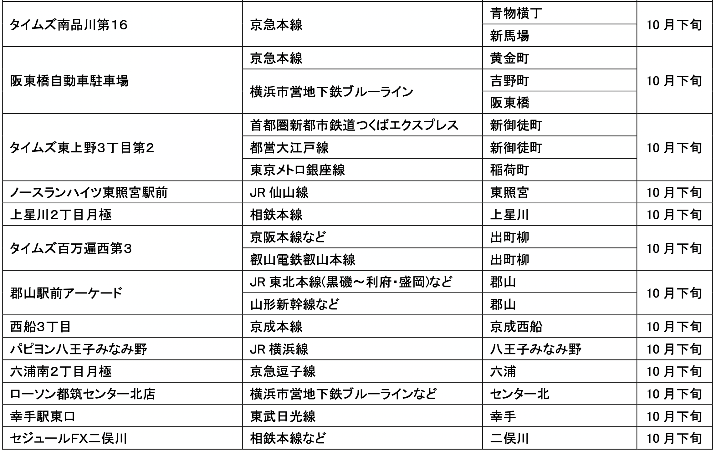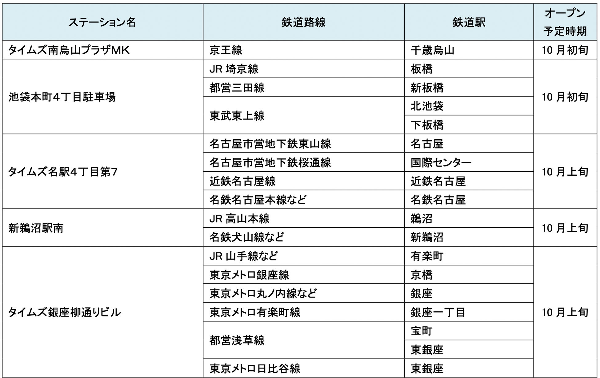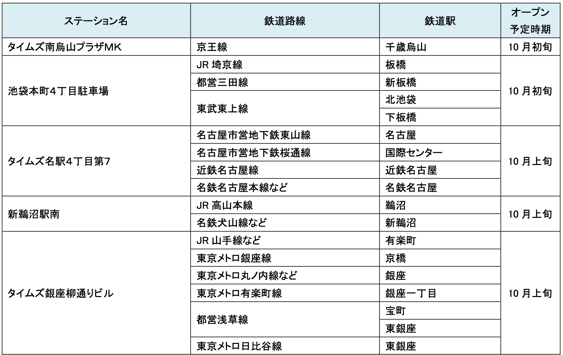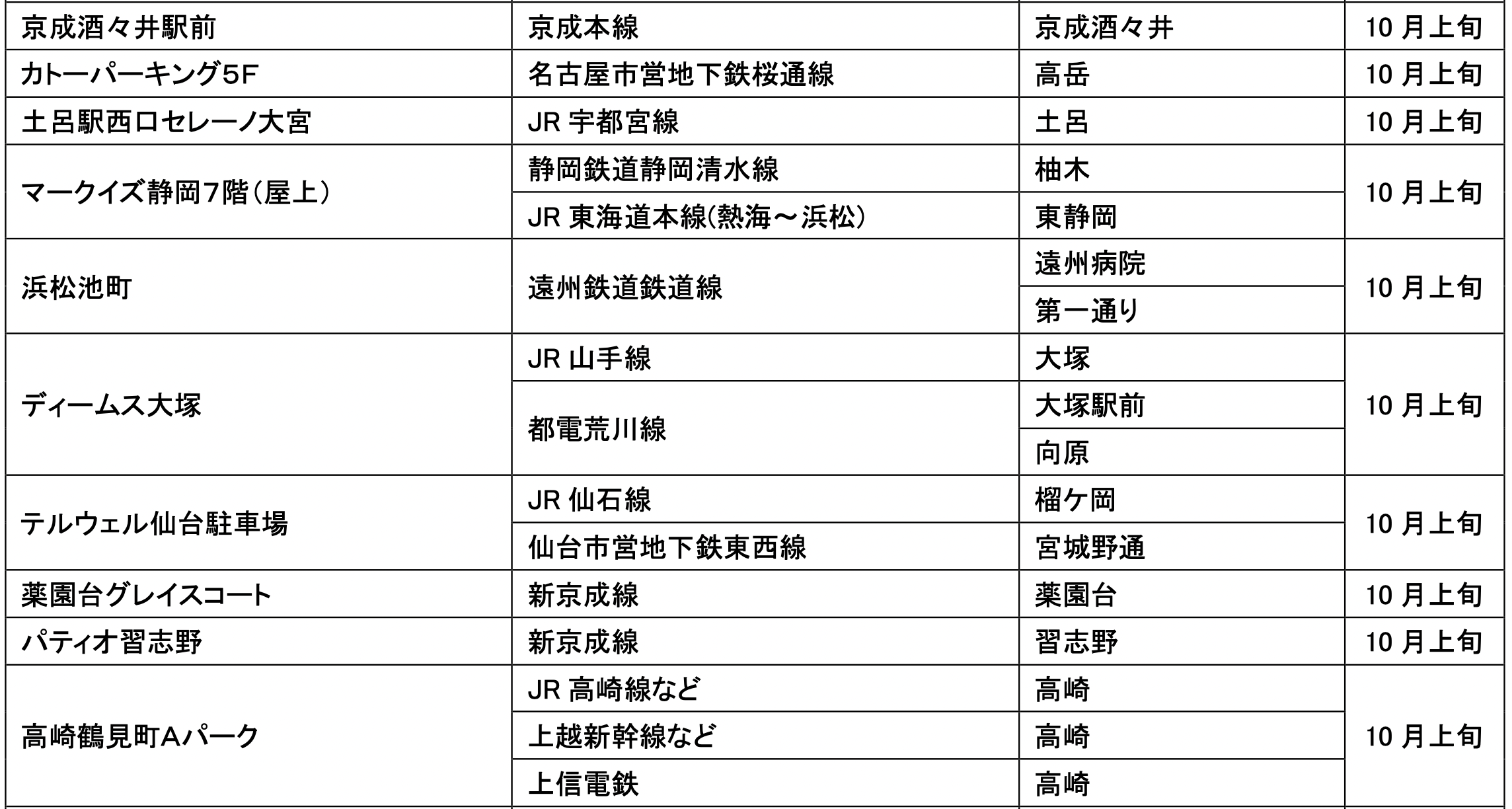 10月にオープンおよびオープン予定の「パーク&ライド」が可能な駐車場は16件、「レール&カーシェア」が可能なステーションは53件です。