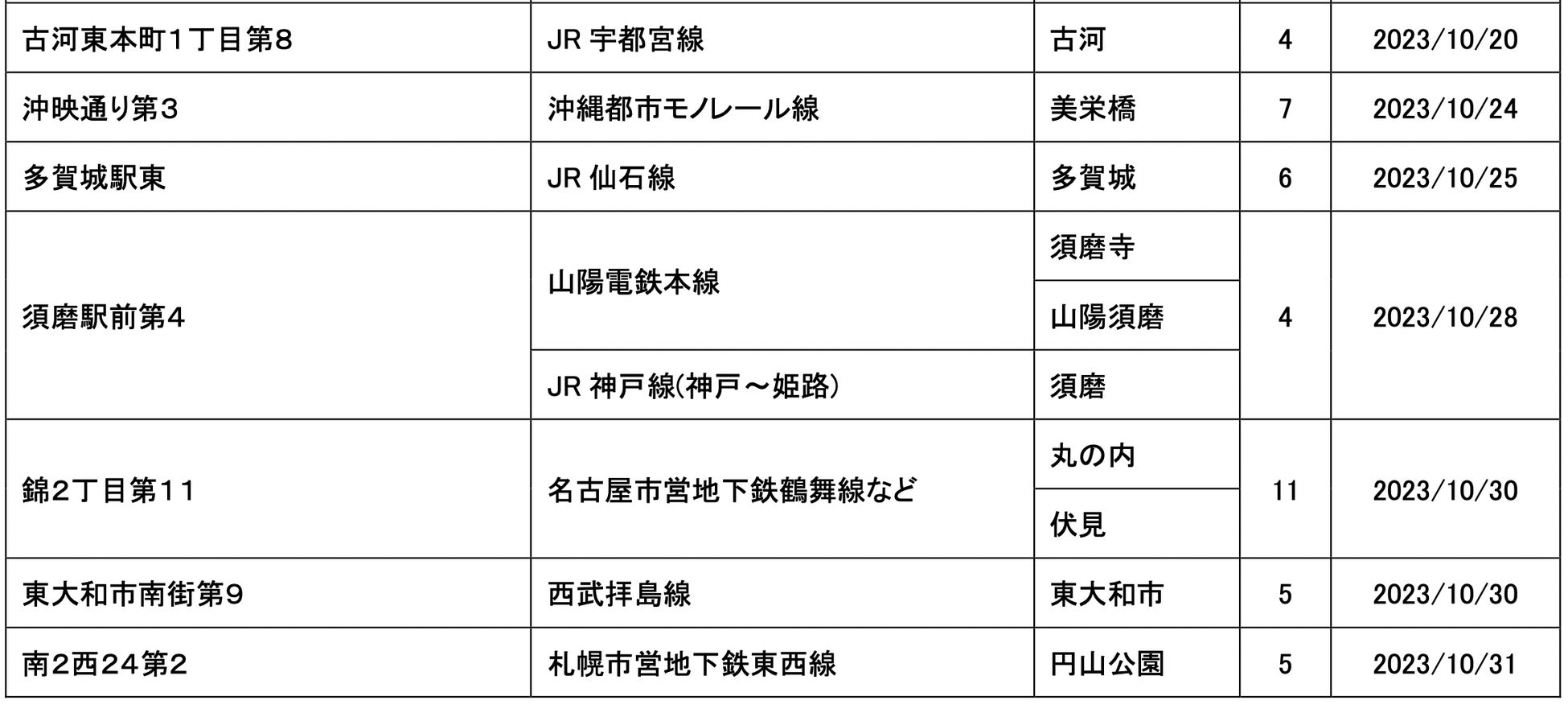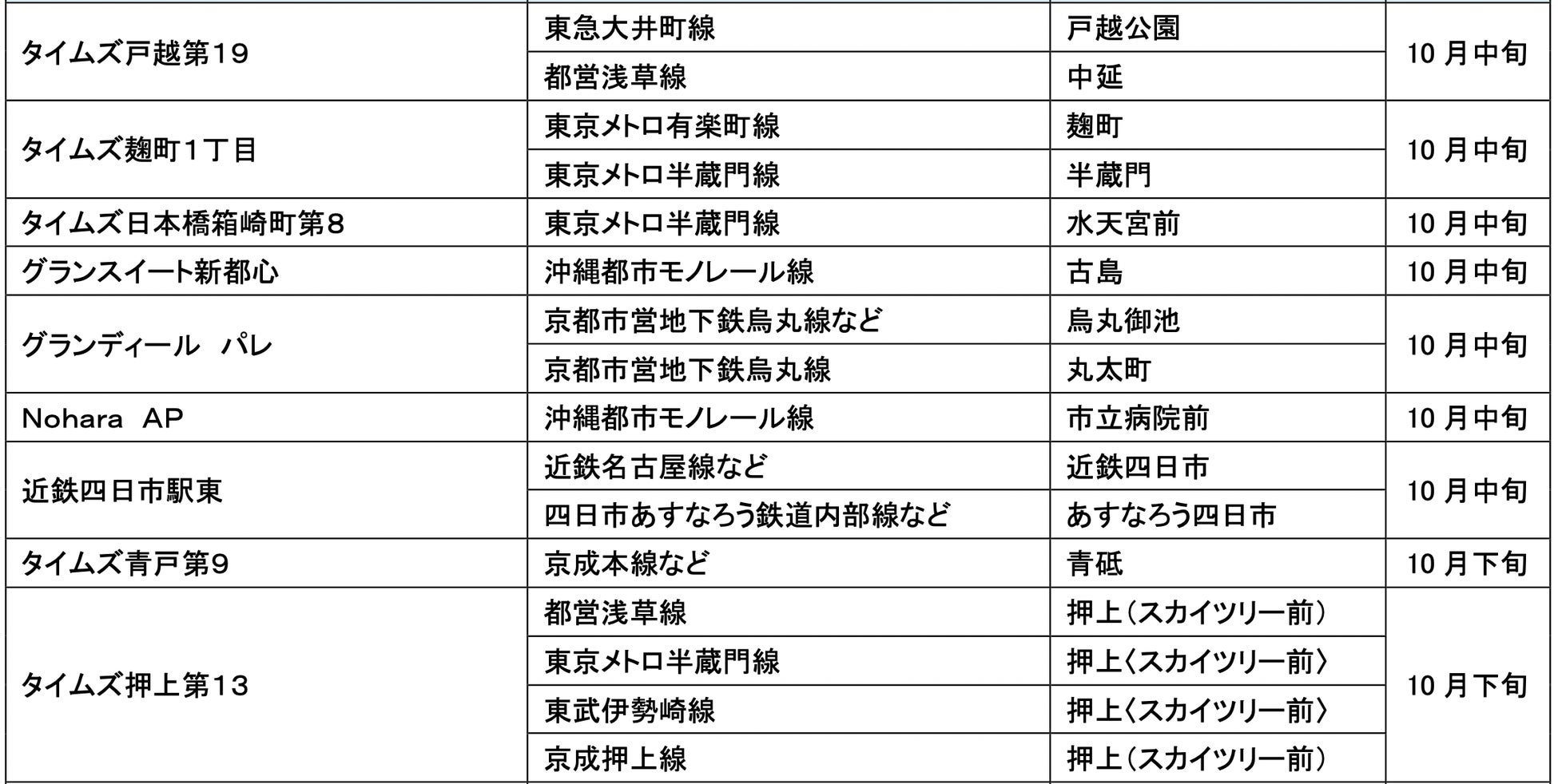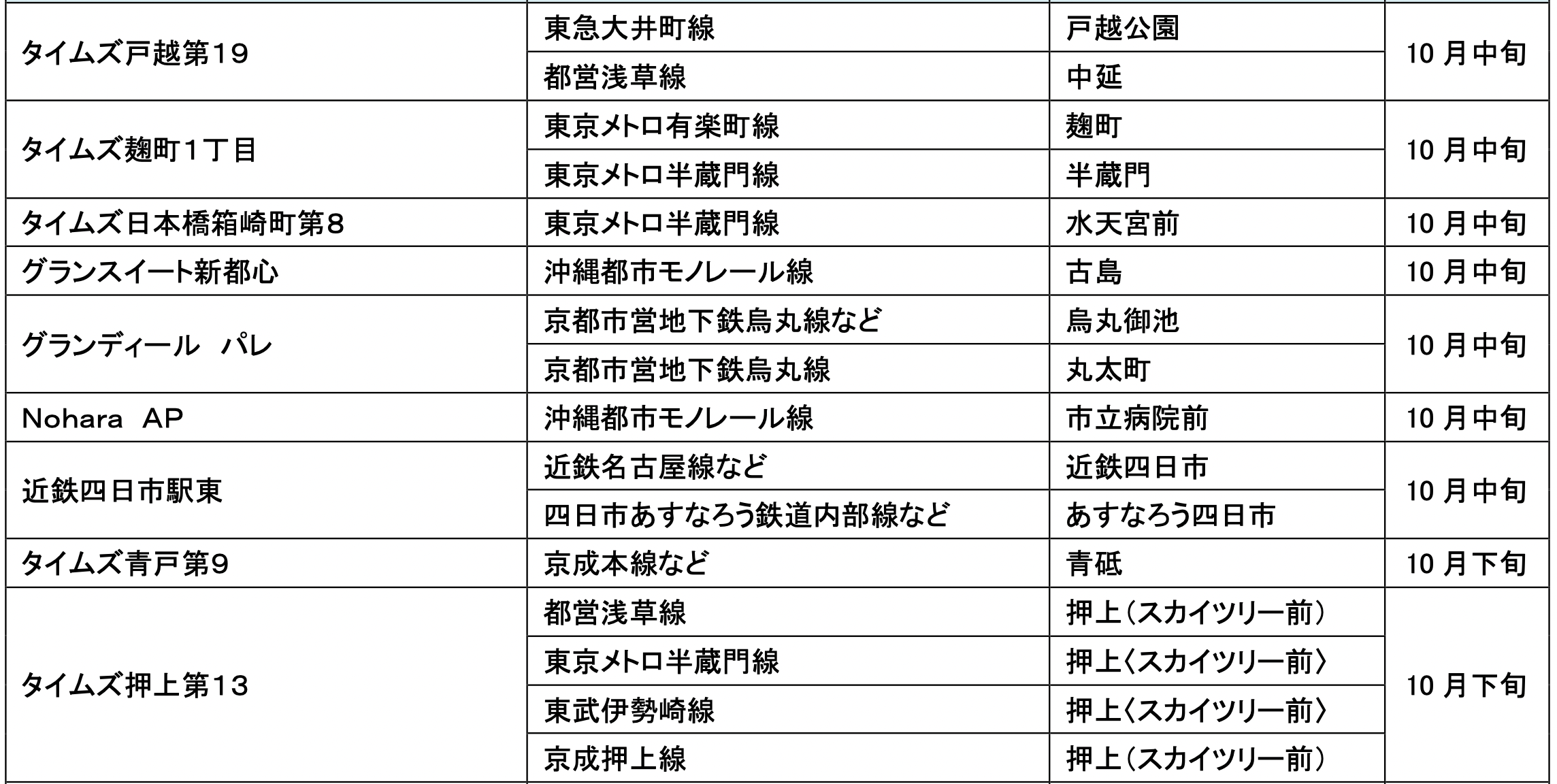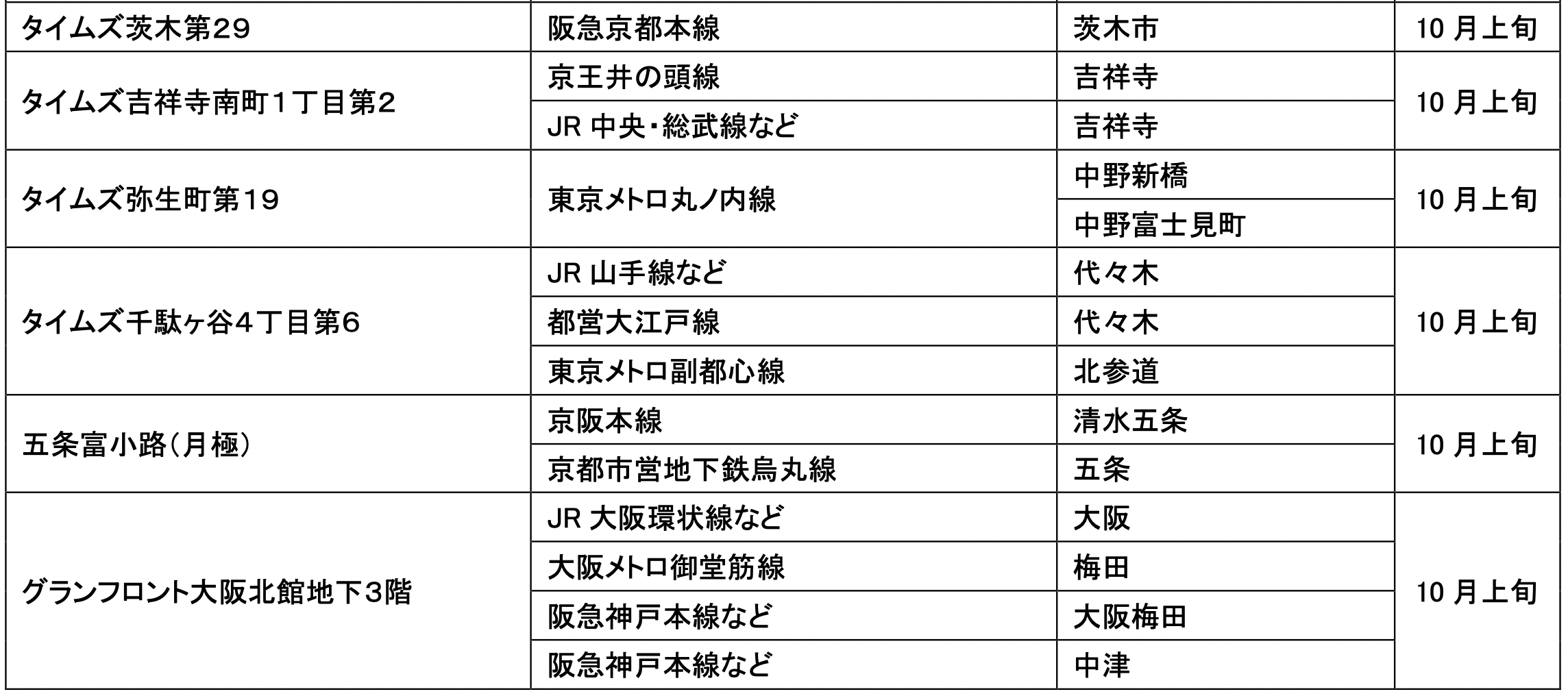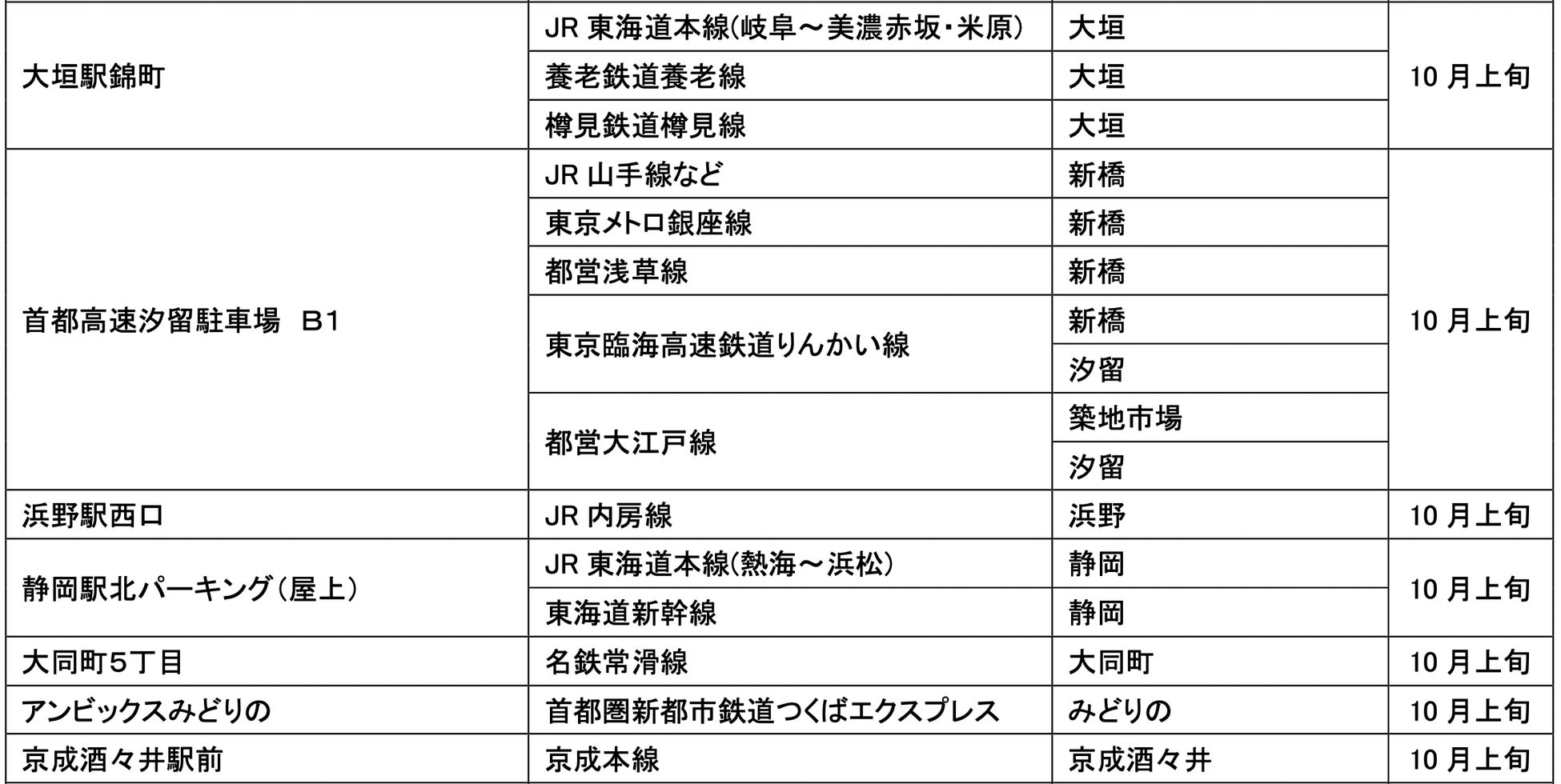 10月にオープンおよびオープン予定の「パーク&ライド」が可能な駐車場は16件、「レール&カーシェア」が可能なステーションは53件です。